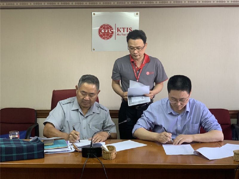 泰國KTIS集團(tuán)董事長和浙江歐亞輕工裝備制造有限公司董事長共同在合同上簽字。